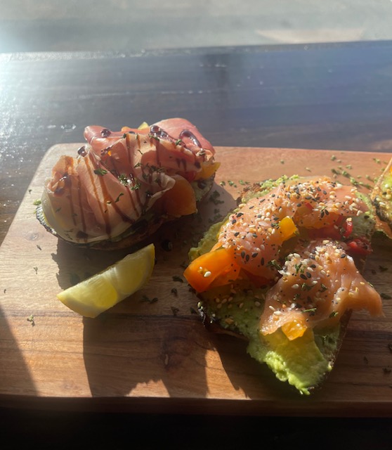 🐟 Just Keep Swimming – A classic smoked salmon toast with a fresh, savory bite.